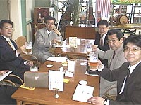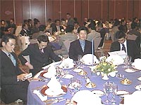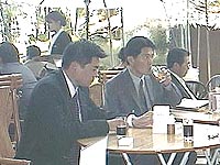 セレモニーの定番、ご祝辞の連続にちょっと疲れる JCメンバー。しかし、これがあるから乾杯が旨い!