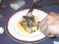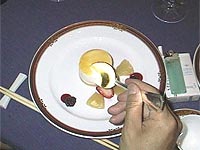 メインディッシュも出てきて、正に宴もたけなわ。 オオスミマンドリンは披露宴芸としては異色!? |