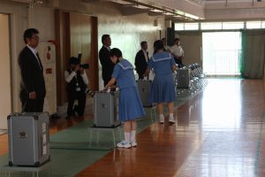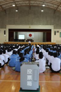 ホーム > 事業報告 > 私たちの選択~未来をつくろう~ in 朝倉高等学校 2016/06/27 6/14(火)朝倉高等学校で模擬選挙の設営・運営を行いました。 地域の将来を担う若者の主権者意識の向上を目的として取り組んでいます。 - 事業報告 模擬選挙