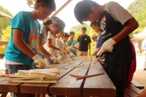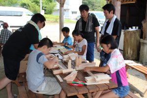 今年で7回目となる継続事業ですが、今年は糸島市の子供たちを迎えて朝倉地域の子供たちと共に、寺内ダムの背面登りや竹はしつくりや川遊びや木工体験を行いました。