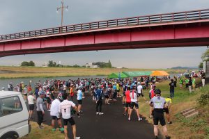 当日は小雨が降るなかでの開催でしたが色とりどりのウェアをまとったたくさんの参加者でいっぱいでした。