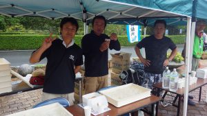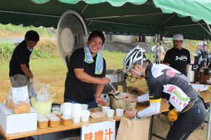 各エイドやゴール地点では水分補給はもちろん、地域色豊かな朝倉の特産品を揃えてふるまいました。