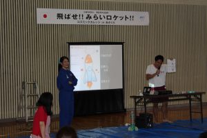 講師にJAXA宇宙教育指導員の野口 みき氏、MCに町田 隼人氏をむかえまして、親子で来られた参加者で会場はいっぱいとなりました。