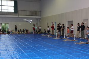 当日は台風接近に伴いあいにくの雨降りで屋内にて開催となりました。