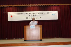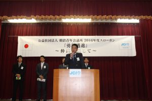 そしてこちらも今年度卒業される、地域開発委員会の井上宗久君の元気溢れる「JCIクリード唱和」はお見事!!お手本です。