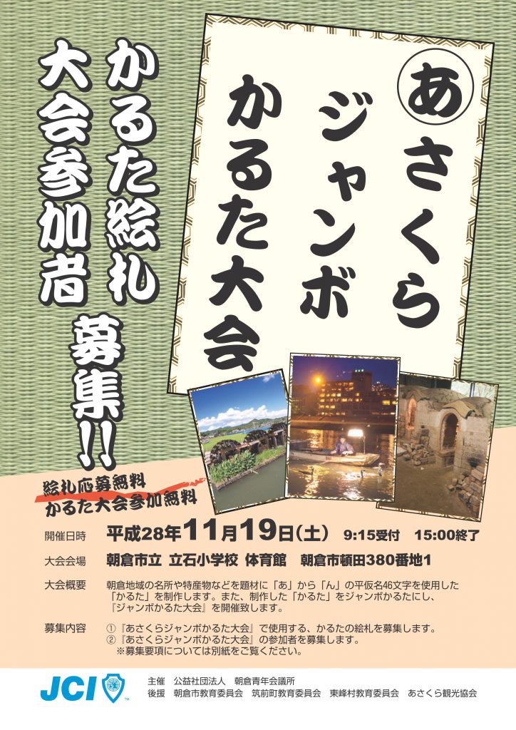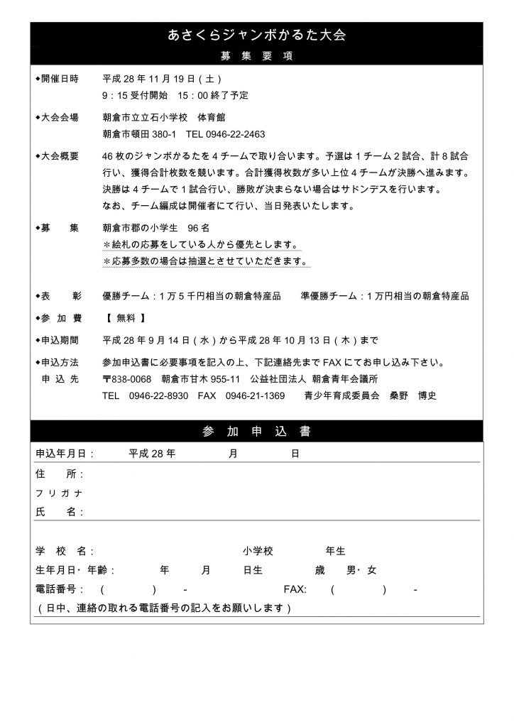 2016年11月19日(土) 朝倉市立立石小学校体育館にて行います。